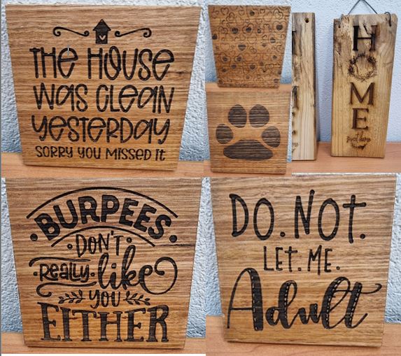 Coasters of various designs, or your own custom design. Laser Etched onto timber, 10cm x 10cm x .5cmm apprx.
